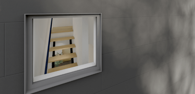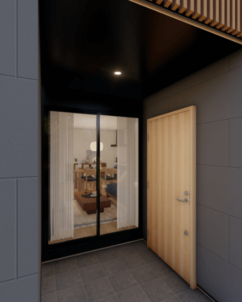 建物正面に設けられた格子は外観に遊び心を生みだし