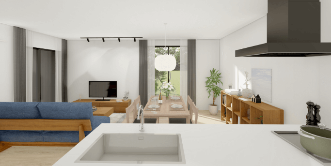 水回りの家事動線もひとまとめにしたり、便利なリビング収納